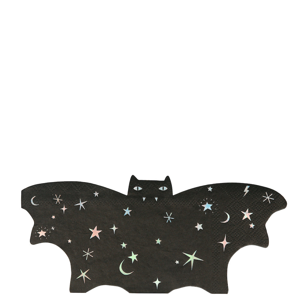 These sparkly and spooky bat napkins are the perfect touch for your Halloween decor! Featuring 16 napkins made of eco-friendly paper.